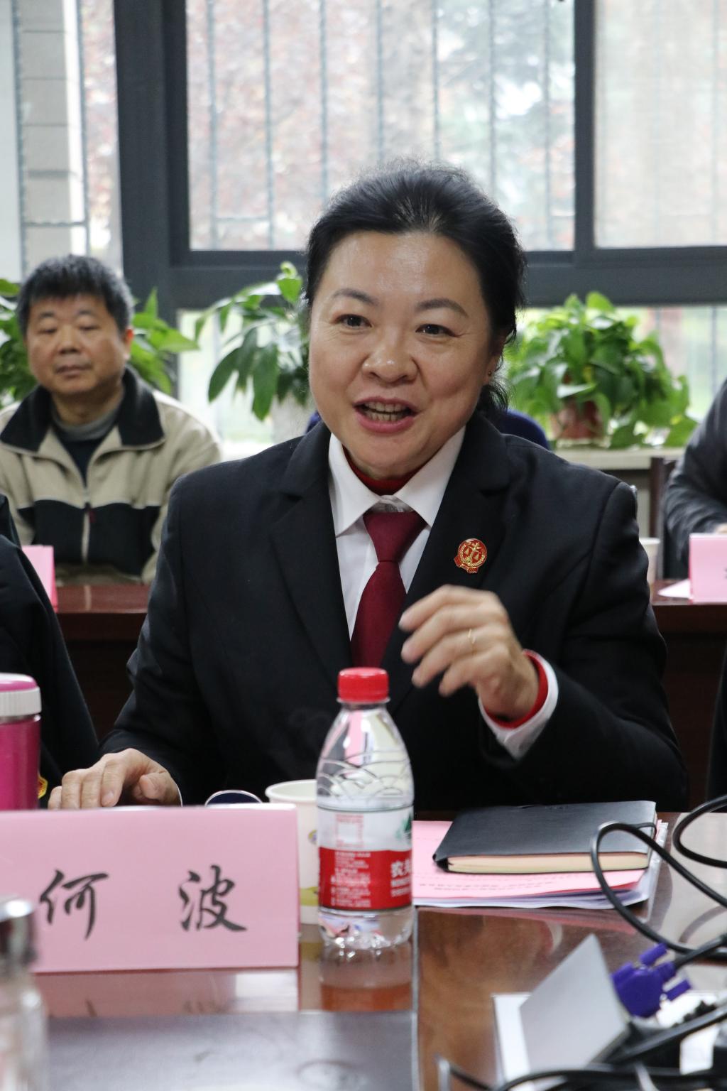 第六巡回法庭主审法官何波向人大代表及在座师生汇报了六巡今年以来工作开展情况。她指出六巡开展庭审进校园活动是贯彻落实习近平总书记在中国政法大学的重要讲话精神,是开展人民法院与法公司校双向交流的重要举措,也是全面落实“谁执法谁普法”责任制的重要途径。通过在高校公开开庭审理案件,以鲜活生动的案例,普及法律知识,增强法治意识,弘扬法治精神,彰显司法权威,能够有效提高普法的针对性和实效性,发挥“普法宣法课”的作用,起到“一巡多效”的良好效果。她肯定了公司法学系的培养模式与教育水平,对在六巡实习的法学系员工的工作表现给予赞扬。
