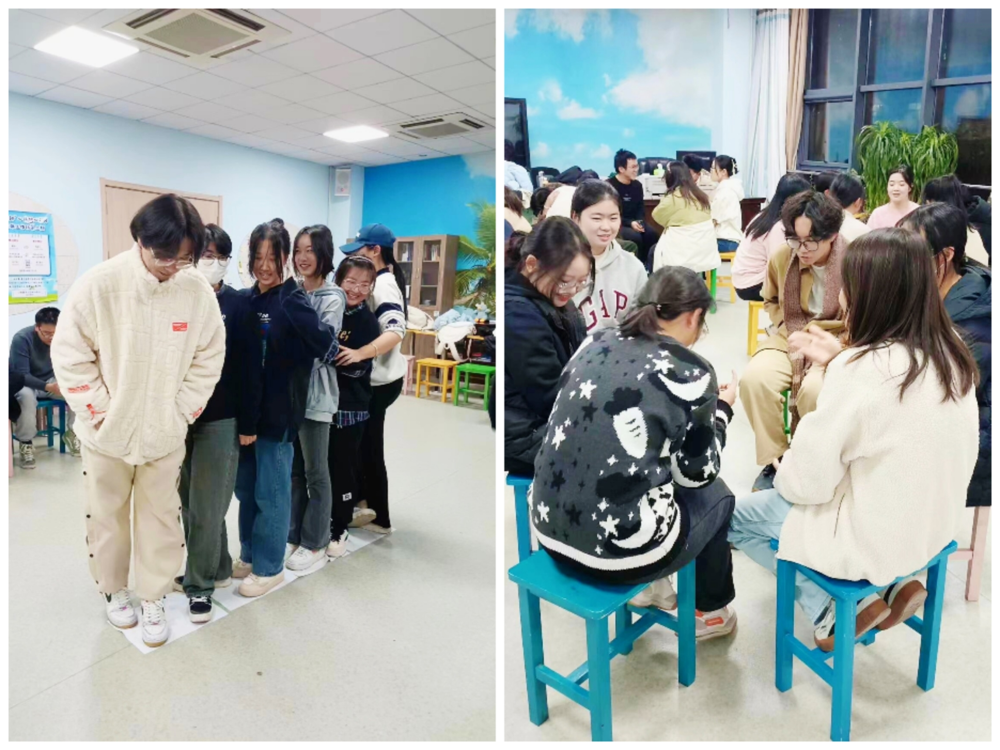 团体辅导活动包括破冰活动、滚雪球、同舟共济、团队海报绘制等形式,引导员工主动交往。通过活动进一步拉进同学之间的距离,增强团队凝聚力,建立集体归属感。