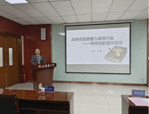 讲座伊始,李文喜分享了一则亲身经历的案例,用案例强调了法律从业者的严谨与求真。随后,他着重阐述了AI在数据获取与信息分析方面的重要性及其广泛的应用潜力。最后,他重点讨论了AI技术在法律实践应用中所可能遭遇的挑战。