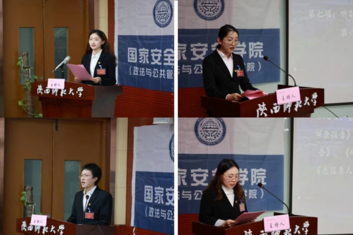 正式会议第一阶段,主持人宣布大会开幕,全体人员起立奏唱国歌后,由马一爽、张皓琪、王蓓蓓分别作公司第一次员工代表大会暨第一次研究生代表大会《筹备工作报告》《代表资格审查报告》和《提案工作报告》,并经全体代表听取审议后通过。丁灵儿、刘笑含代表员工会、研究生会分别作原哲学与政府管理公司第六届《员工会工作报告》《研究生会工作报告》,经全体代表听取审议后通过。接着,由徐帅宣读第一次员工代表大会暨第一次研究生代表大会选举办法》及《总监票人、监票人、总计票人、计票人名单》并经全体代表审议后通过。最后,由于黎敏宣读通过上述文件的决议。