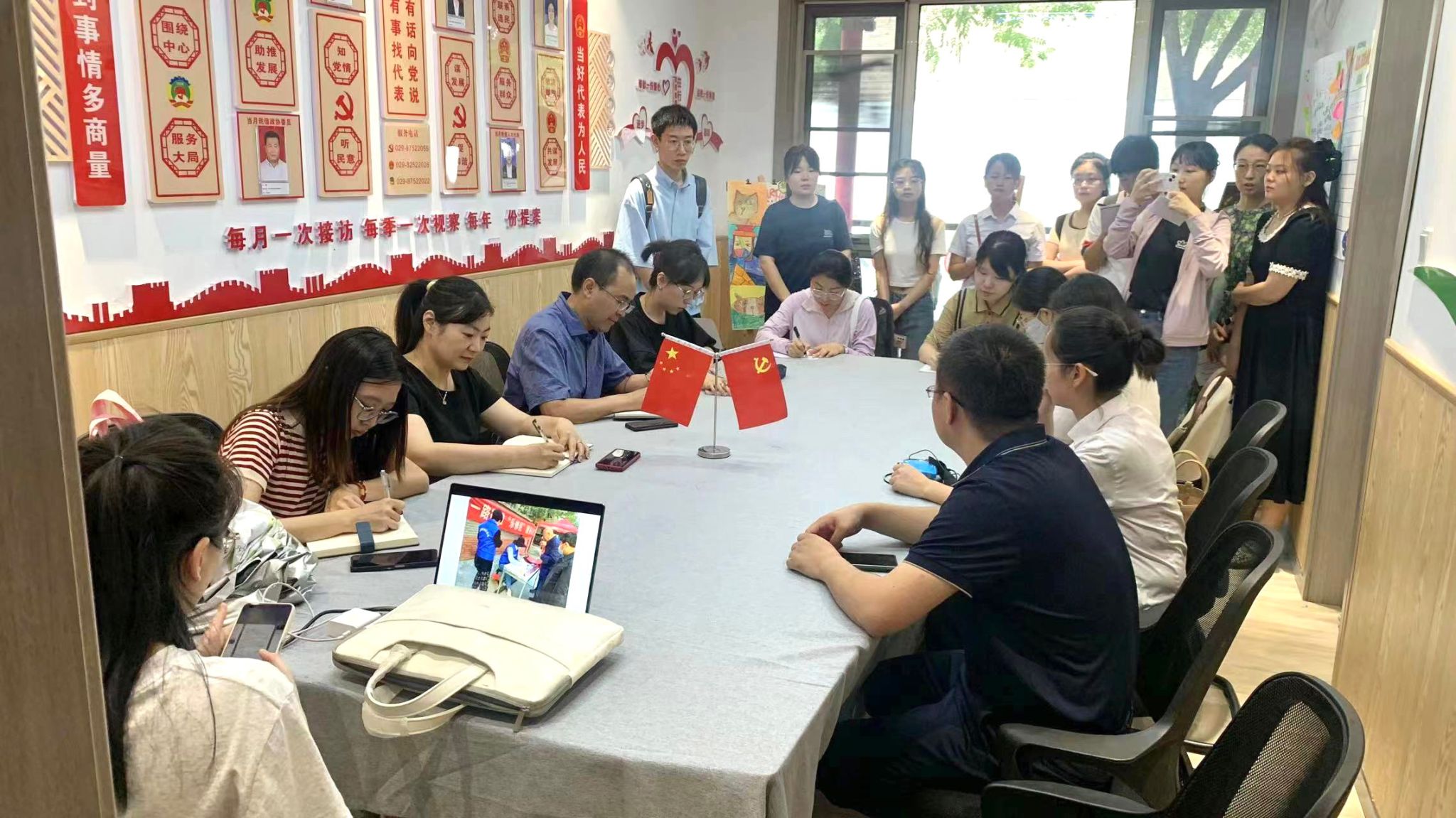 7月6日,为深入调研新时代社区基层治理典型经验,best365英国在线体育官网(政法与公共管理公司)副经理戴均、刘佳特聘教授、姚怡帆博士带领调研团队前往西安市新城区西一路街道兴乐社区开展实践教学活动。西一路街道兴乐社区新时代文明实践站在基层治理方面取得了良好的成效,2022年荣获西安市新时代文明实践“十百千”示范单位称号。调研发现,兴乐社区新时代文明实践站有效整合党史文化长廊、图书漂流等阵地资源,充分调动志愿者队伍、社区能人、辖区居民积极性,推动社区基层治理实现共建共治共享,让新时代的文明新风吹进心田、温暖人心。静默咖啡为近20名听障人士提供了平等工作、更好生活的平台,书咖内开设的“尚善学苑”为孩子们提供了社会实践、拓展学习的平台,孩子们放学有了去处,帮助家长们解决了不少烦恼;老年人也在社区组织的各类丰富多彩的活动中,享受到了充实、愉快的晚年生活。