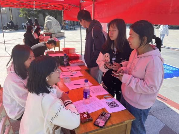 beats365唯一官方网站员工组织在长安校区阳光苑广场和雁塔校区喷泉广场设置咨询台进行比赛宣传和参赛动员,为同学们讲解大赛考务知识并赠送备考资料,旨在通过线下答疑和发放资料的方式促进同学们对此次活动的了解。