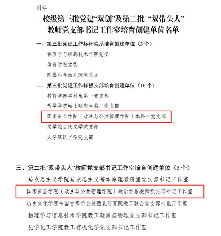 1月10日,公司党委公布了公司第三批党建“双创”及第二批“双带头人”教师党支部书记工作室培育创建单位名单,公司本科生党支部入选第三批党建“双创”样板培育创建单位,政治学系教师党支部书记工作室入选第二批“双带头人”教师党支部书记工作室培育创建单位。