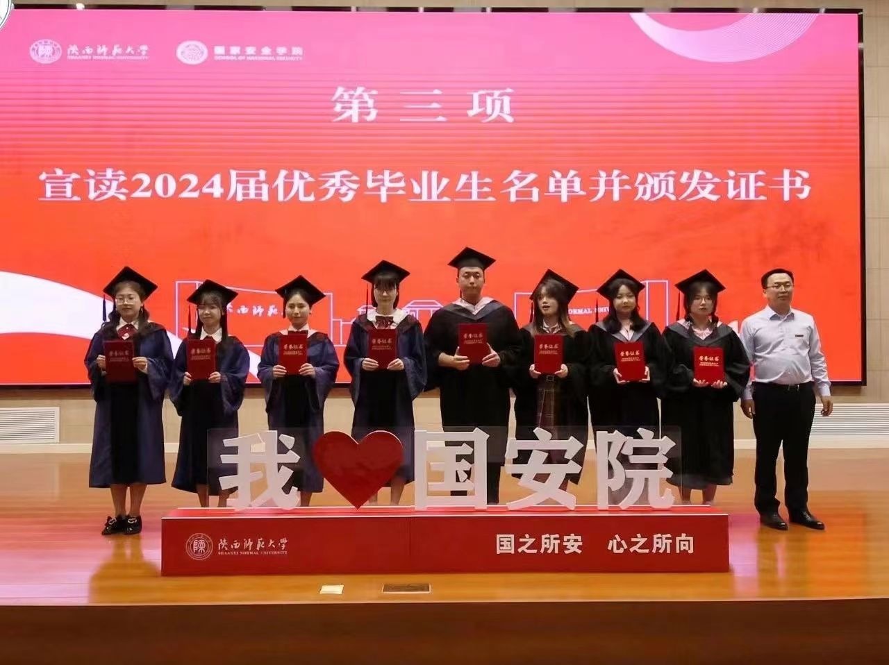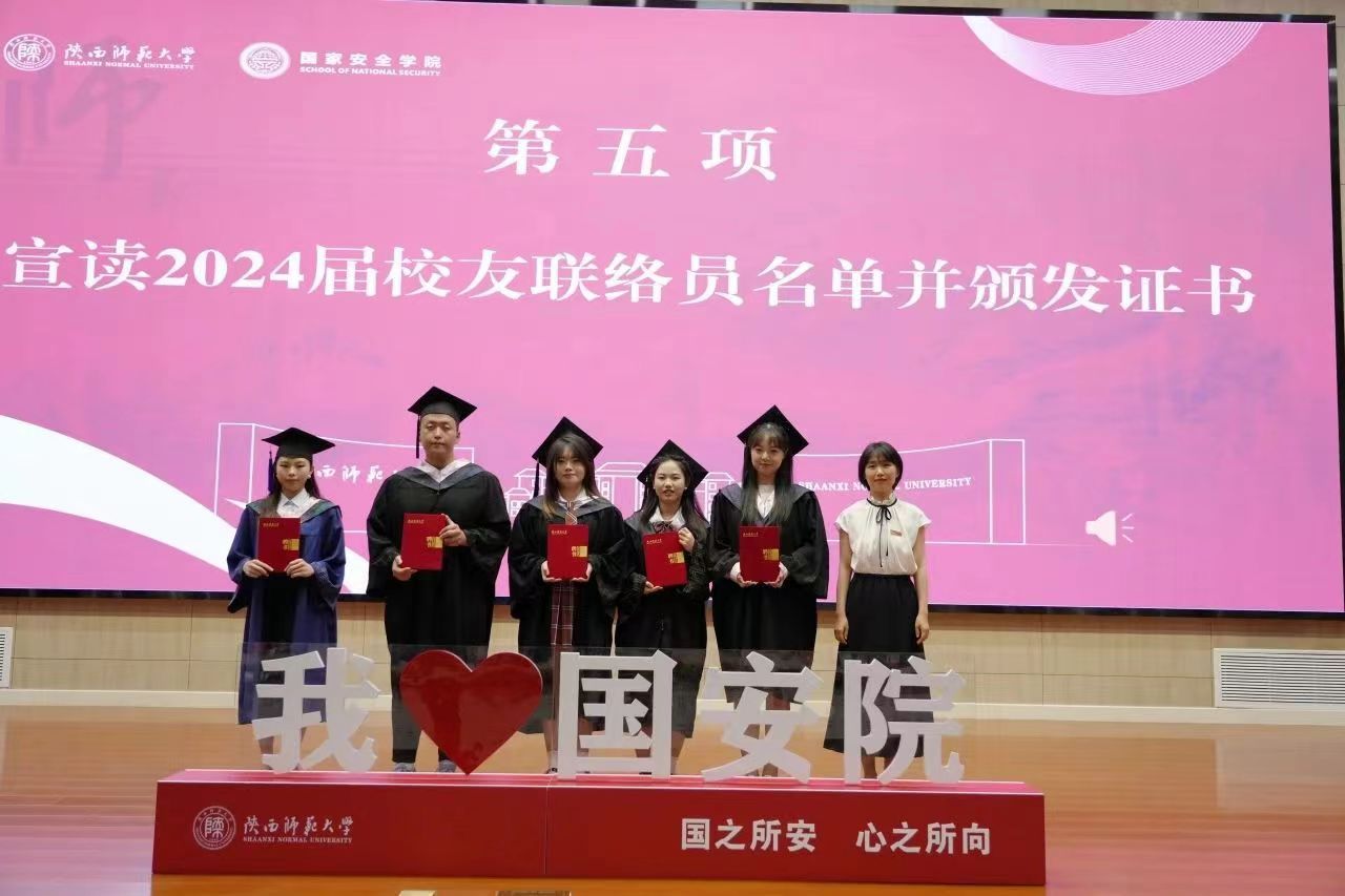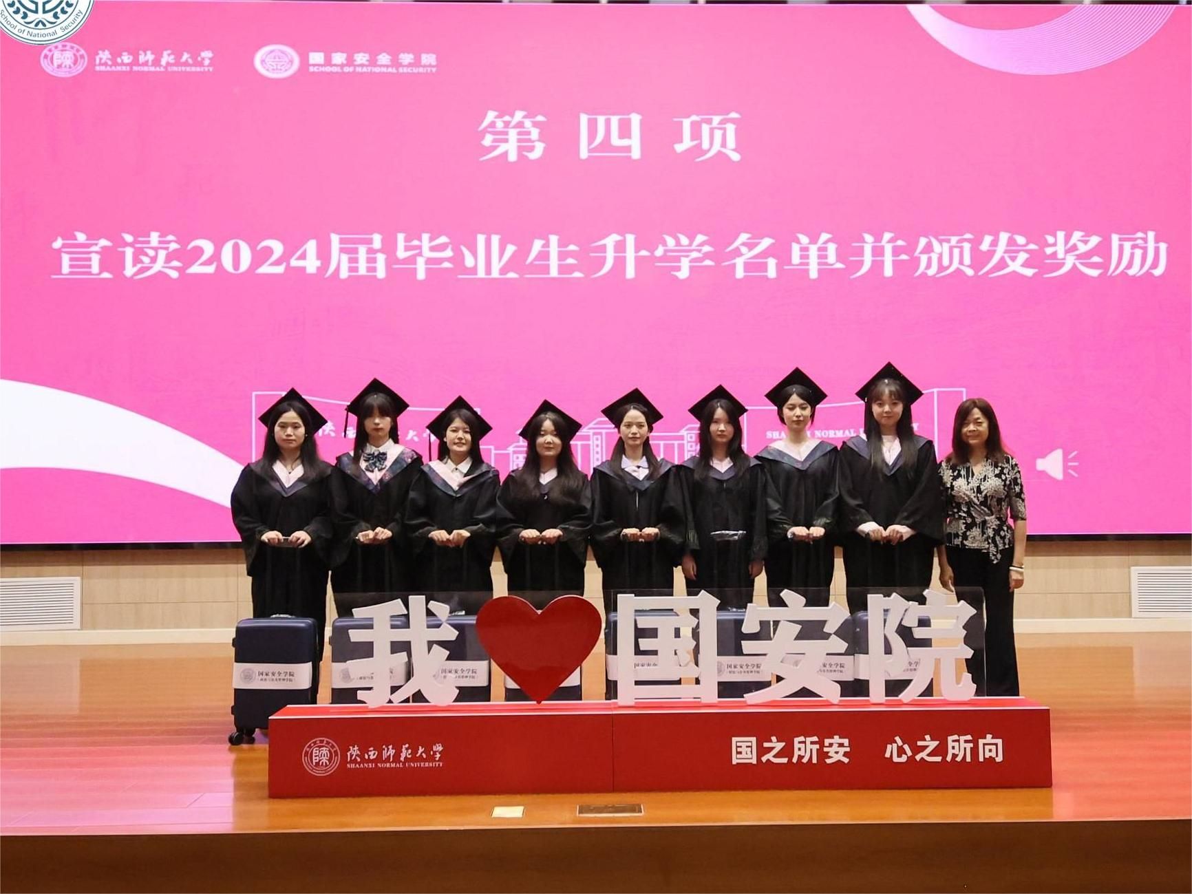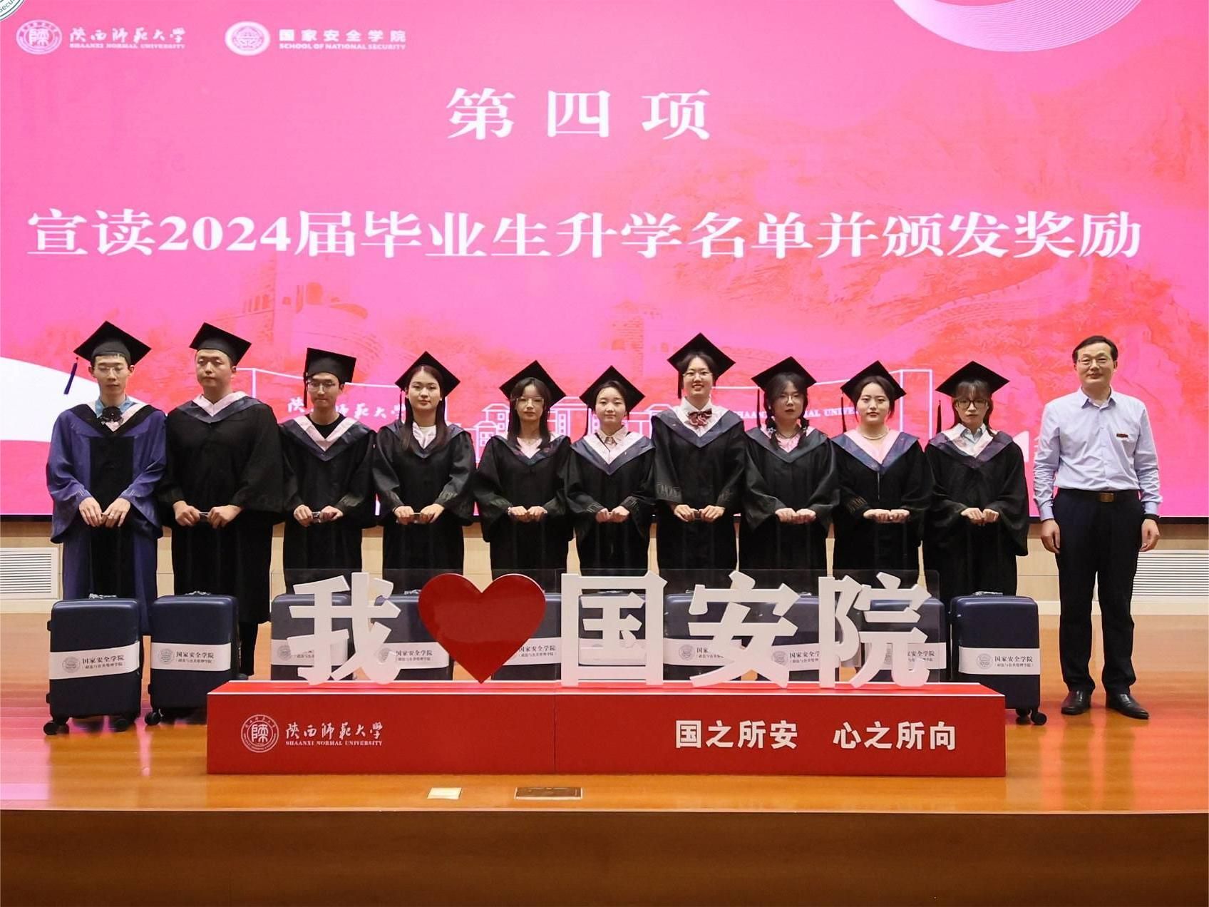 公司副经理郑家昊宣读2024届升学毕业生名单,行政管理系系主任武建强、政治学系系主任丁韶彬、法学系系主任向东、法学系教授王蓓为同学们颁奖。