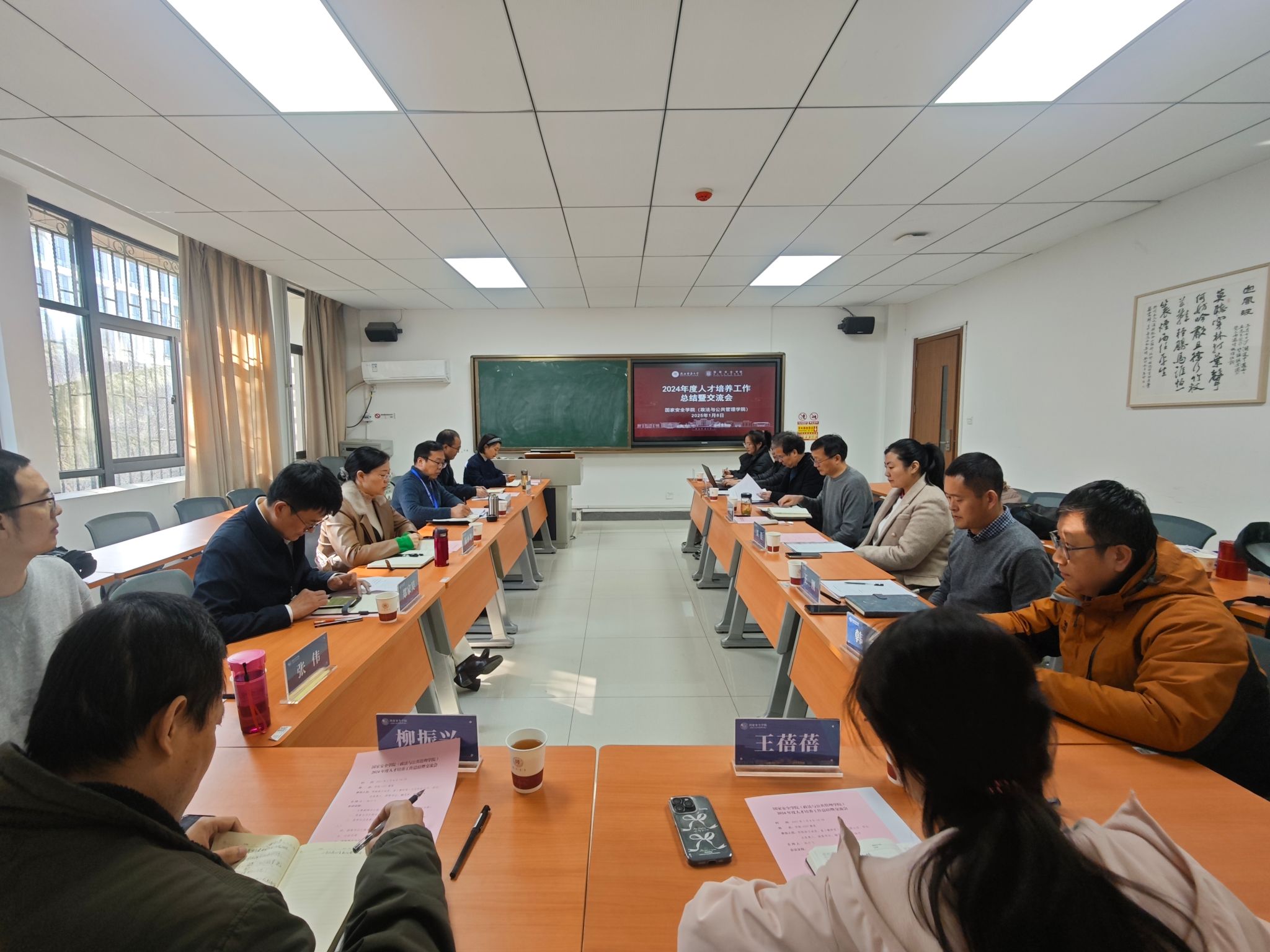公司副经理、公共管理系副主任张伟、政治学系主任丁韶彬、法学系主任向东、国家安全教育教研室负责人王刚分别从各系(教研室)2024年工作成效、问题与挑战、2025年度工作举措三个方面展开汇报。国家安全学学位点负责人丁韶彬、公共管理学学位点负责人刘佳、法律硕士学位点负责人高学强分别介绍了本学位点的基本情况、存在的问题以及下一步的工作安排。团委书记陈琦从五个方面汇报了第二课堂育人工作情况。大家重点对本专业(学位点)存在的问题进行了梳理和总结,深刻分析、反思了问题的症结,意识到问题的紧迫性,分别提出了相应的解决方案,得到了与会人员的共鸣。