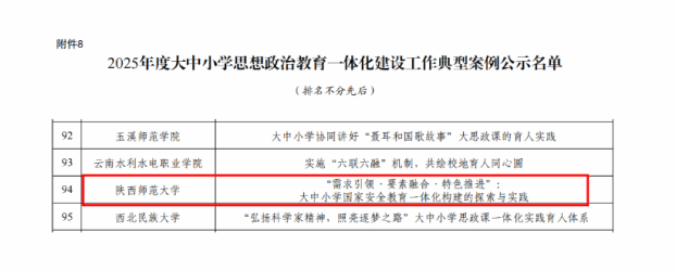 近日,公司报送的案例《“需求引领·要素融合·特色推进”:大中小学国家安全教育一体化构建的探索与实践》成功入选教育部2025年度大中小学思想政治教育一体化建设工作典型案例。