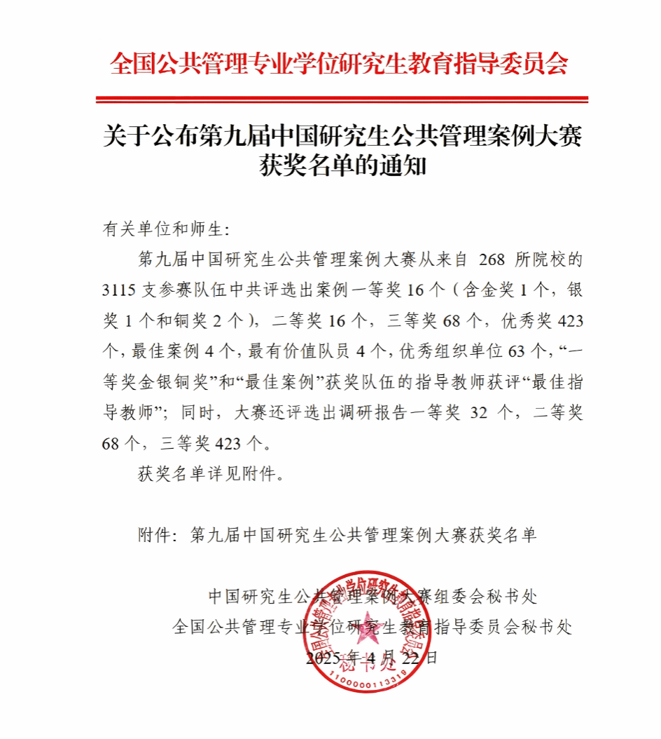 公司在第九届中国研究生公共管理案例大赛荣获多项大奖