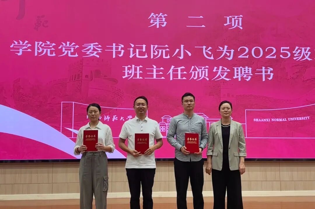 公司党委书记阮小飞为2025级本科生班主任颁发聘书。
