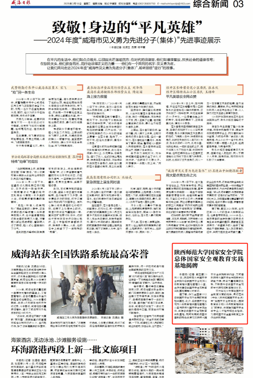 威海日报丨best365英国在线体育官网总体国家安全观教育实践基地揭牌