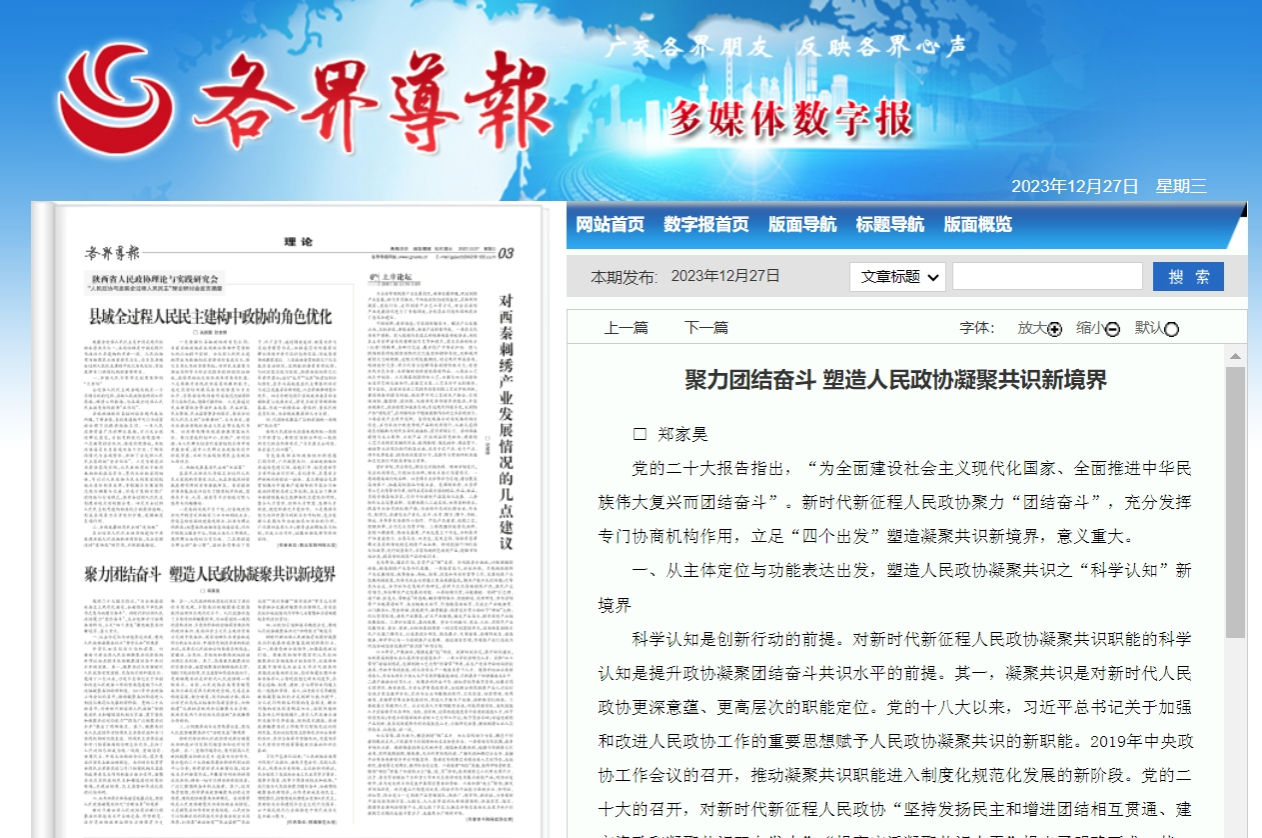 郑家昊:聚力团结奋斗 塑造人民政协凝聚共识新境界