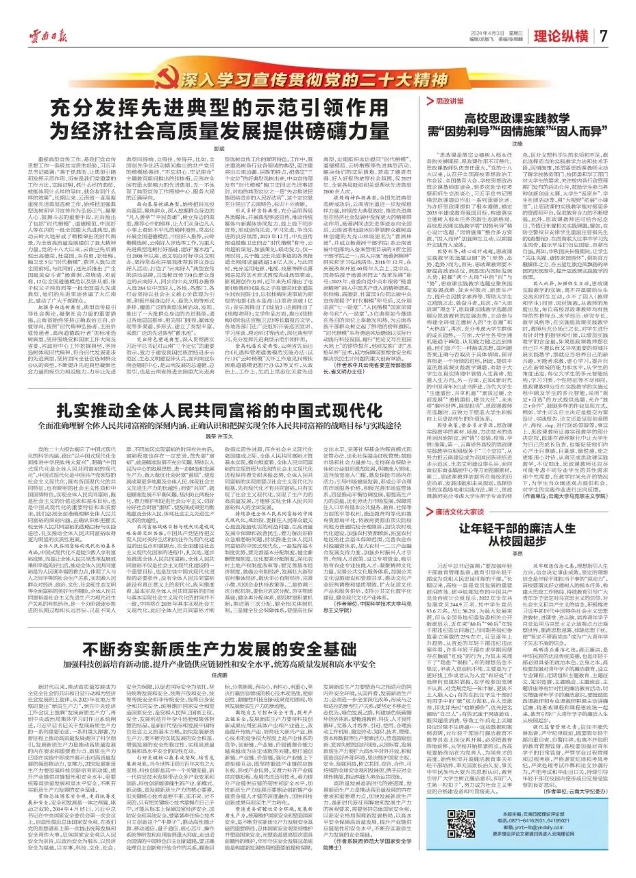 高质量发展是新时代的硬道理,发展新质生产力是推动高质量发展的内在要求和重要着力点。加快发展新质生产力,是新时代新征程解放和发展生产力的客观要求,需要坚持总体国家安全观,以新安全格局保障新发展格局,以高水平安全保障高质量发展,提升产业链供应链韧性和安全水平,不断夯实新质生产力发展的安全基础。