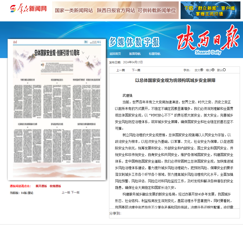 以总体国家安全观为统领构筑城乡安全屏障