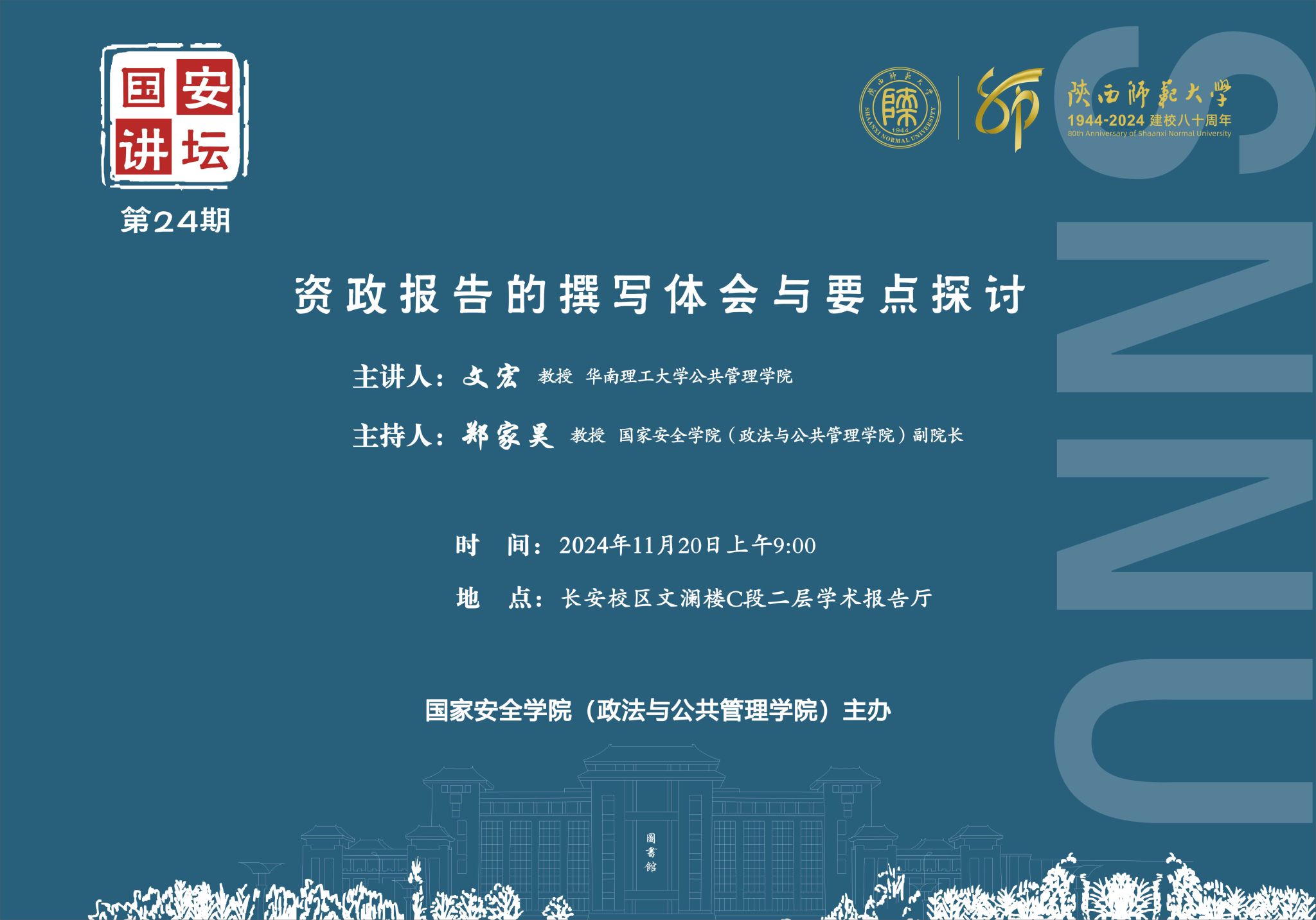 举办时间:11月20日 上午9:00 地点:长安校区文澜楼C段二层学术报告厅