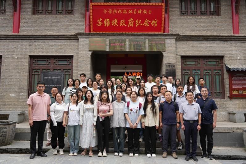2024年6月19日下午,政治学系教师党支部“双带头人”教师党支部书记工作室举办“迎接建党103周年 传承红色精神 创新党建育人”主题学习活动,“双带头人”教师党支部书记工作室负责人郑家昊带领支部全体教师党员、2022级本科生代表以及部分研究生代表前往蓝田县葛牌镇区苏维埃政府纪念馆开展学习教育。