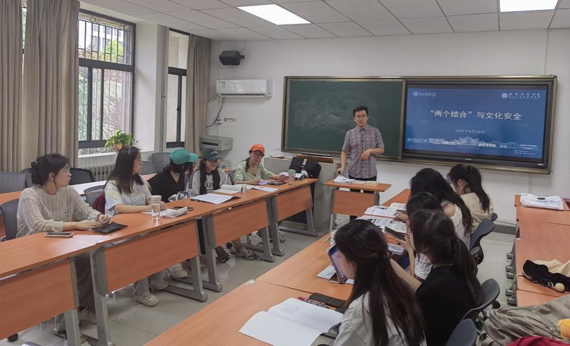 6月28日,主题为“‘两个结合’与文化安全”的第六期活动成功举办。本期活动由苏鹏辉担任主讲。苏鹏辉领学了习近平总书记在文化传承发展座谈会上的重要讲话,分析了“两个结合”与中国式现代化、中华民族现代文明的内在逻辑。通过学习,与会师生深化了对习近平总书记“两个结合”重要论断的理解,增强了文化自信和民族自豪感。